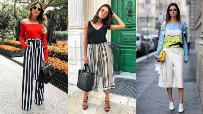 Новый тренд лета — это брюки палаццо и кюлоты. Пошитые из лёгких струящихся тканей, отлично смотрятся с блузами, майками и топами в бельевом стиле.